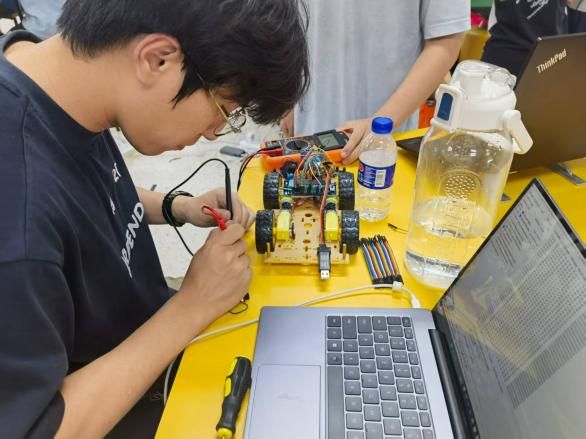 成果展示环节,各小组自主研发的循迹小车依次接受标准赛道测试,在“黑线精准识别”、“高速弯道补偿”、“稳定坡道起步”等任务中表现优异,运行轨迹流畅精准。评委组现场进行专业评分,并针对技术细节即时提问。全部展示结束后,双方师生围绕“传感器融合算法优化”、“低功耗休眠-唤醒机制设计”及“电磁兼容性提升”等后续联合攻关方向展开了深入技术研讨,为项目成果的持续改进及未来合作奠定了坚实基础。