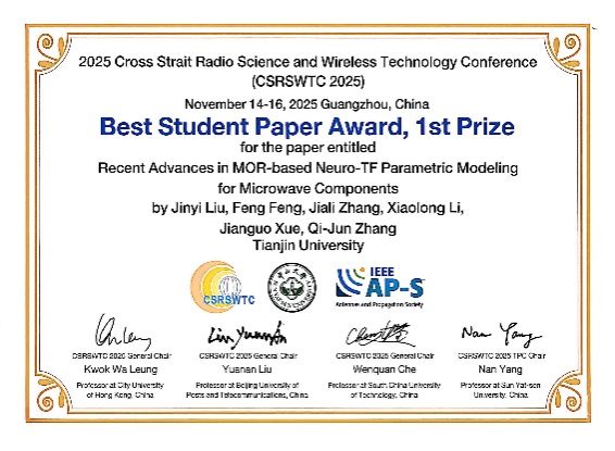 本站讯(通讯员:冯枫)11月14日至11月16日,第28届海峡两岸无线科学与技术会议(CSRSWTC 2025)在广州召开。本届CSRSWTC会议共录用论文397篇,其中63篇参与最佳学生论文竞赛。经过综合评审,最终评选出6篇最佳学生论文,包括1名一等奖,2名二等奖和3名三等奖。免费成人影片 互联感知集成电路与系统团队冯枫教授课题组的博士生刘谨仪,以其论文《Recent Advances in MOR-based Neuro-TF Parametric Modeling for Microwave Components》最终从63篇投稿学生论文竞赛的论文中脱颖而出,荣获最佳学生论文竞赛奖的唯一一等奖,指导教师为冯枫教授。